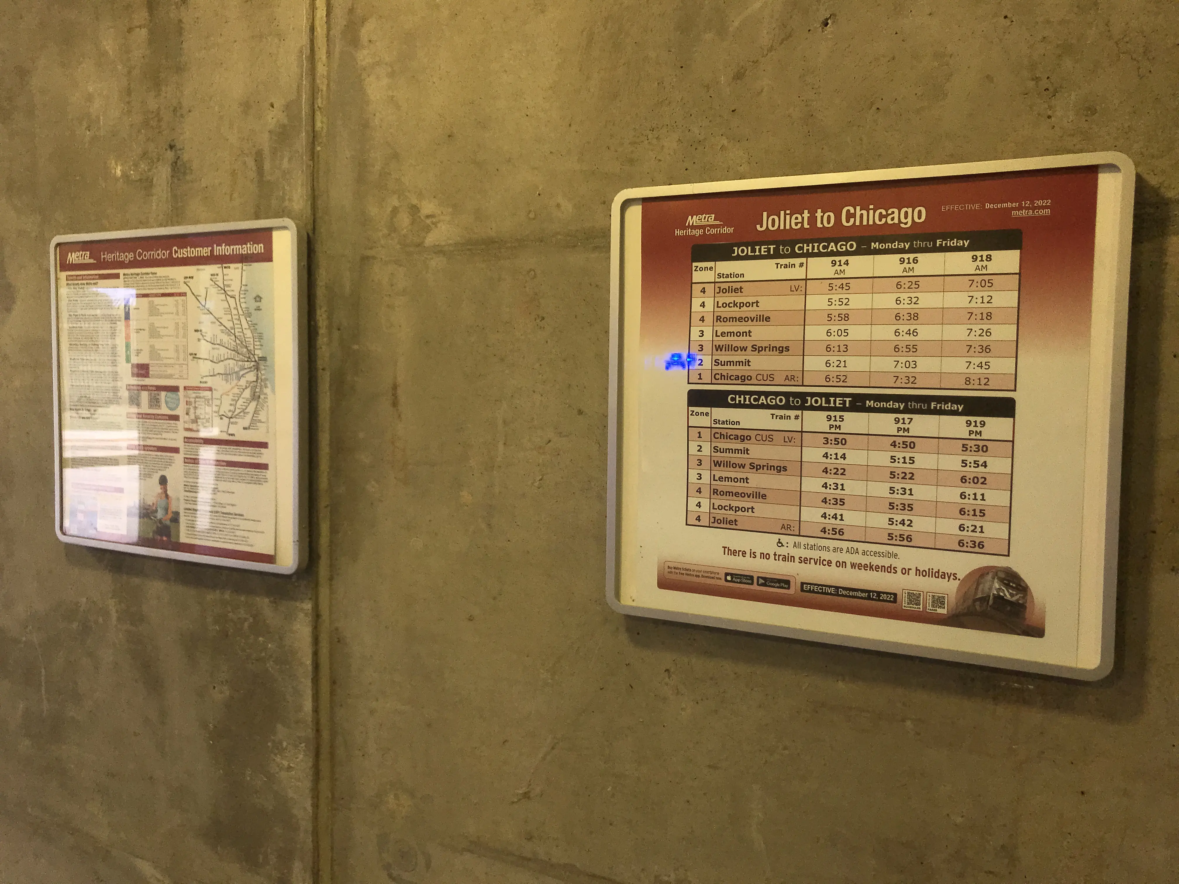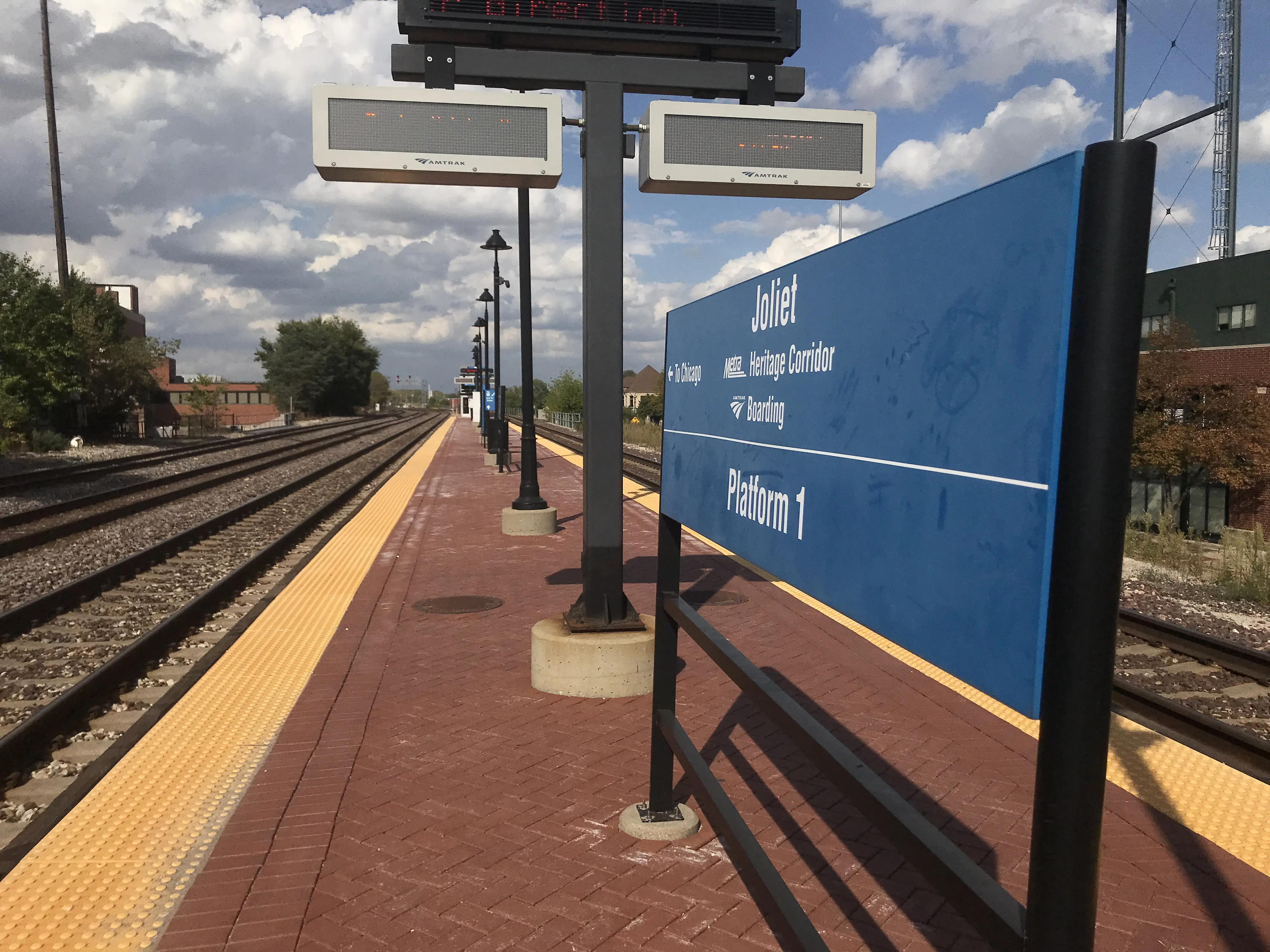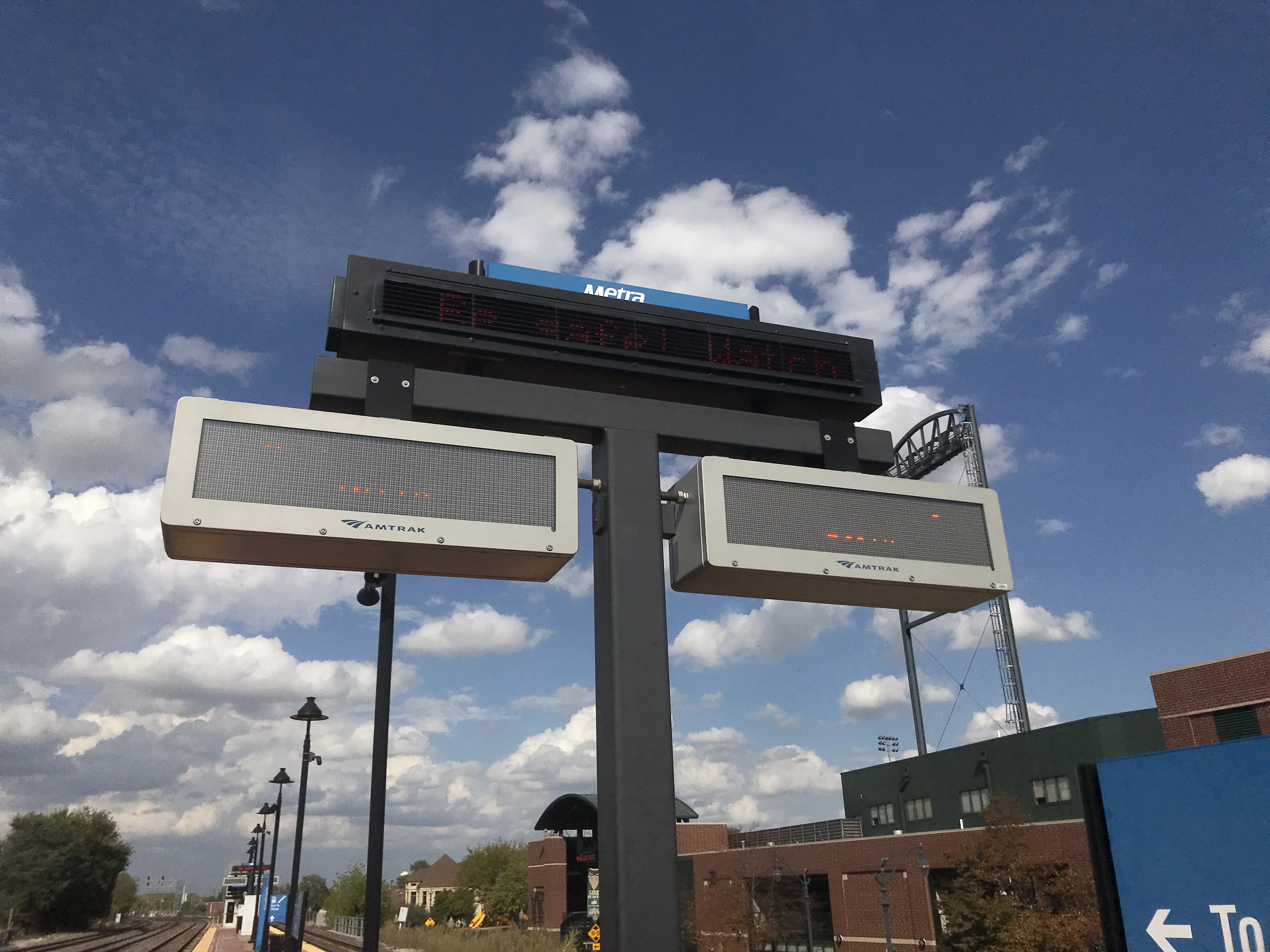 Because this platform serves both Amtrak and Metra, it has both Amtrak and Metra displays!