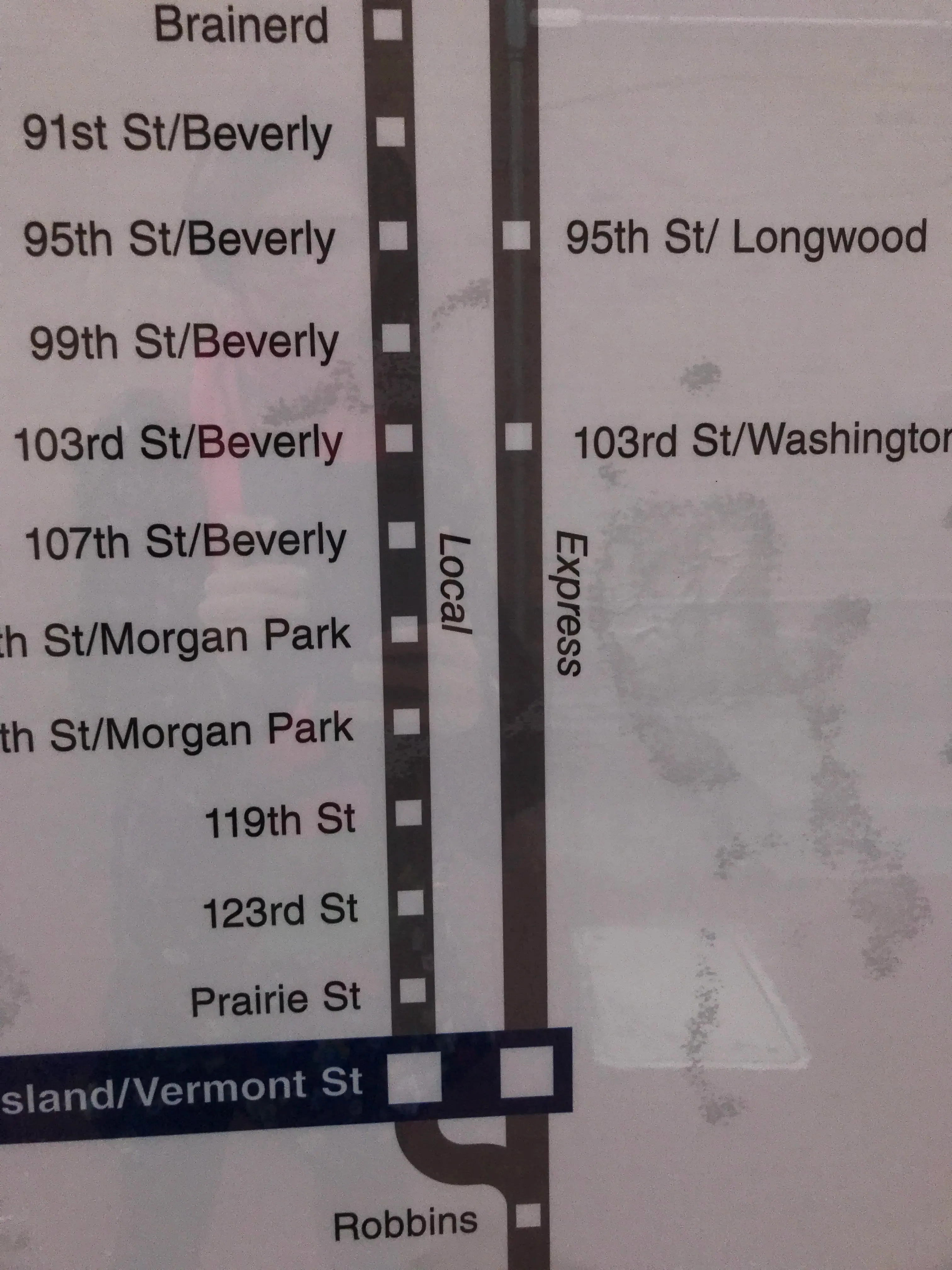 This station is split into two halves - one that serves the mainline (1), and one that serves the Beverly branch (2). There's signage to explain the difference, too! (3)