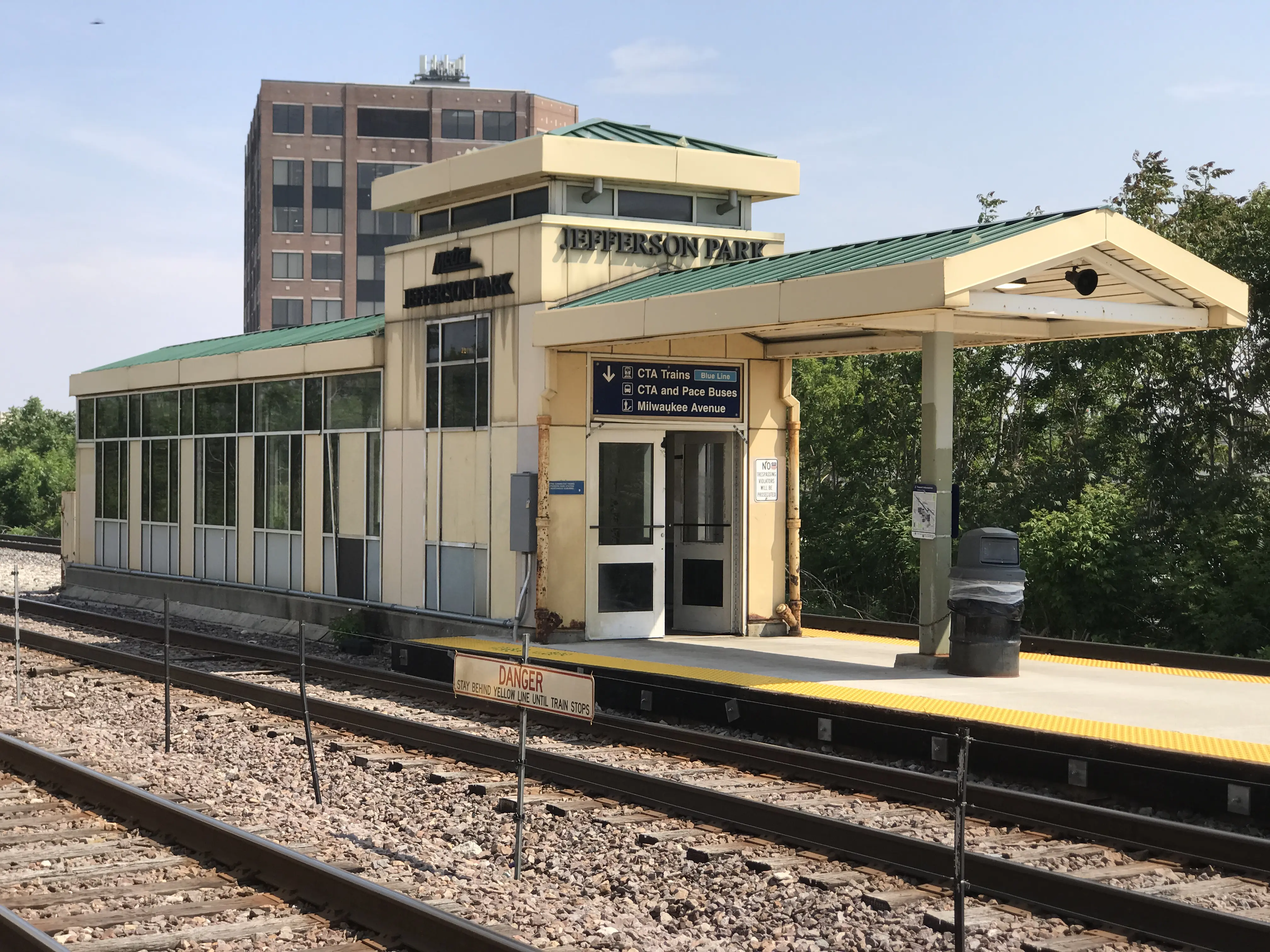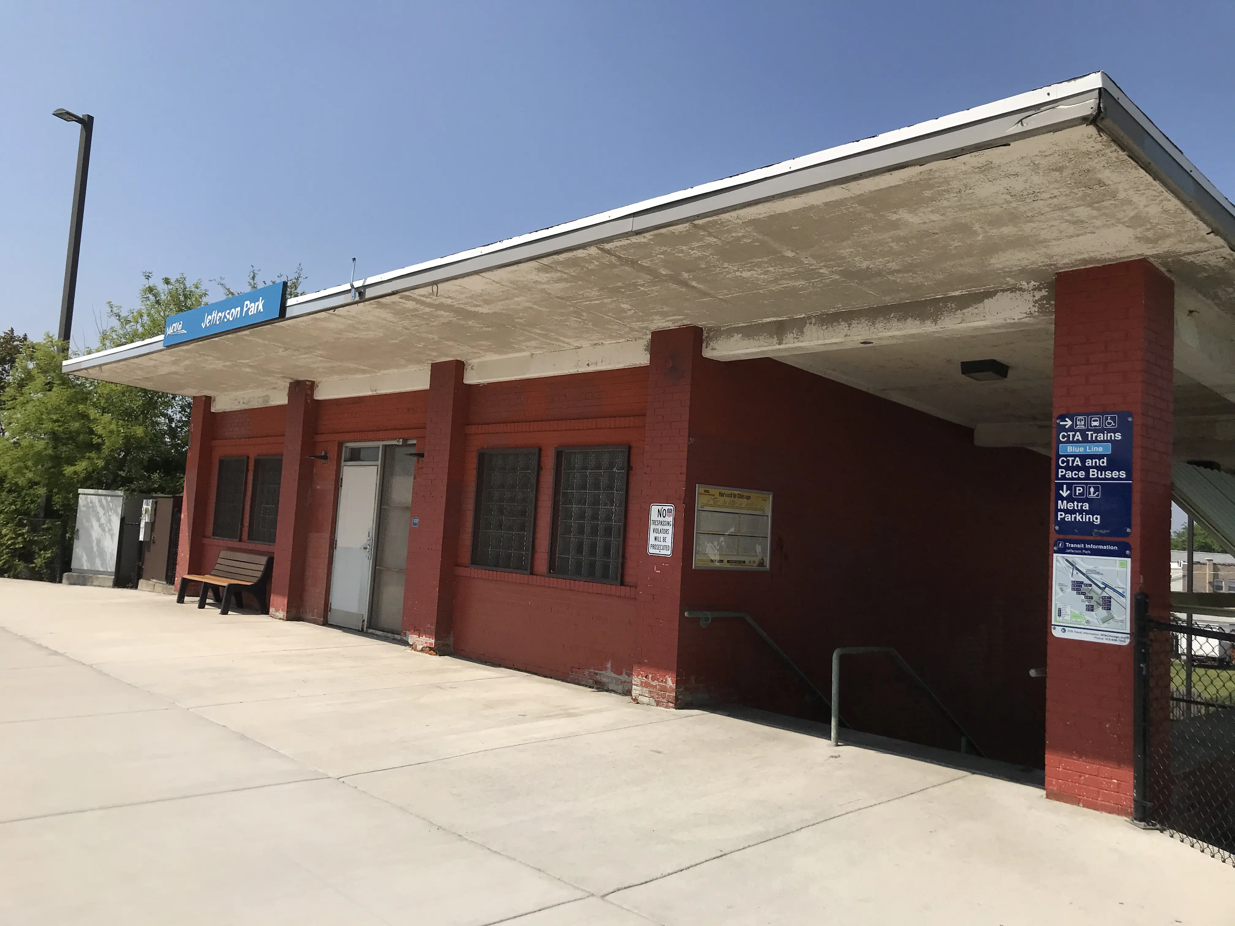 This station is placed between Jefferson Park Transit Center and Milwaukee Avenue - and as such, it has entrances on both ends! The end near Milwaukee Avenue is more interesting to me as it's generally more forgotten about.
